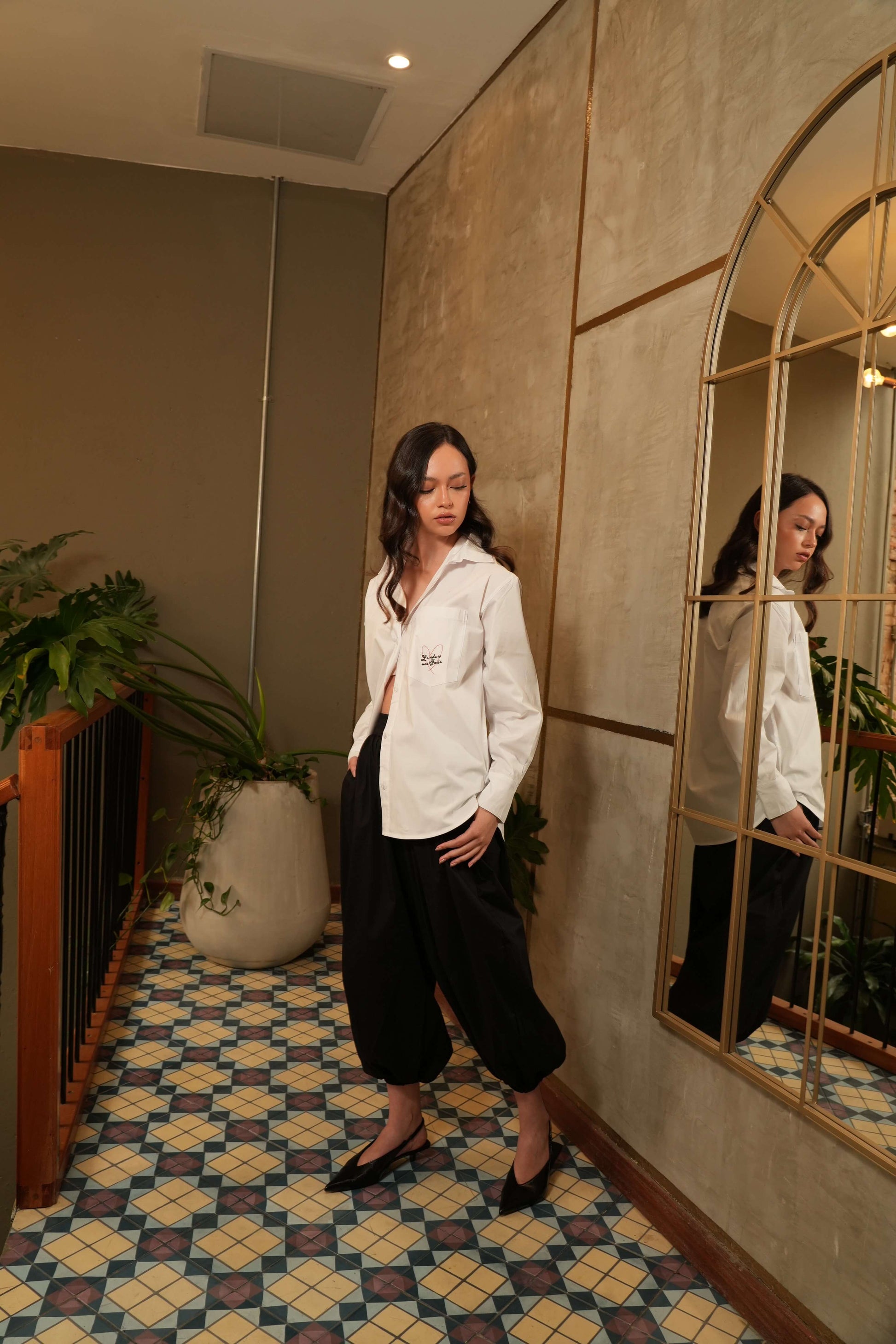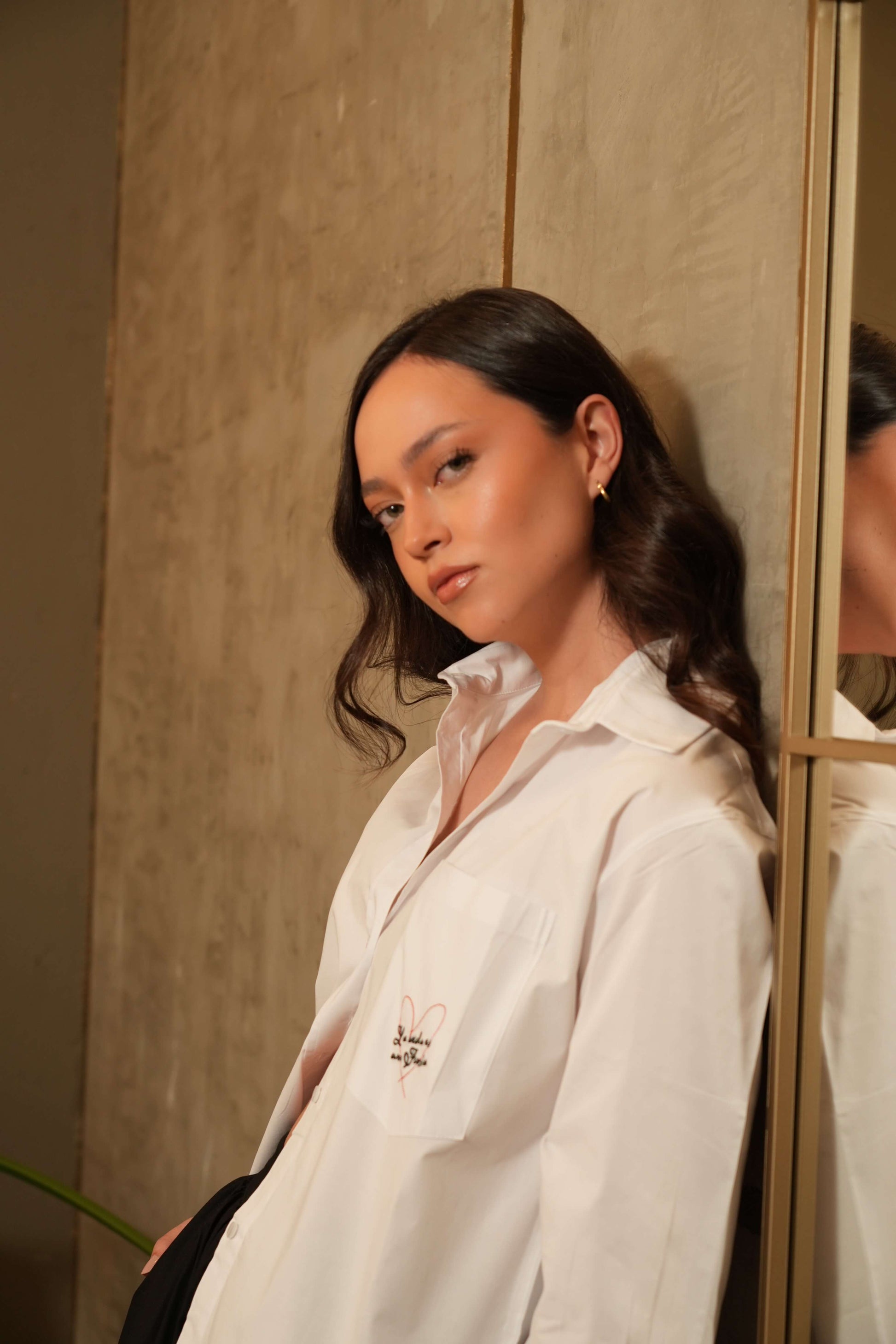 La Camisa Vida es una blusa camisera que combina lo clásico con un detalle lleno de significado. Su diseño limpio y atemporal se eleva con un corazón pequeño bordado en el bolsillo delantero y la frase “La vida es una fiesta”, un mensaje que representa la esencia de la colección.